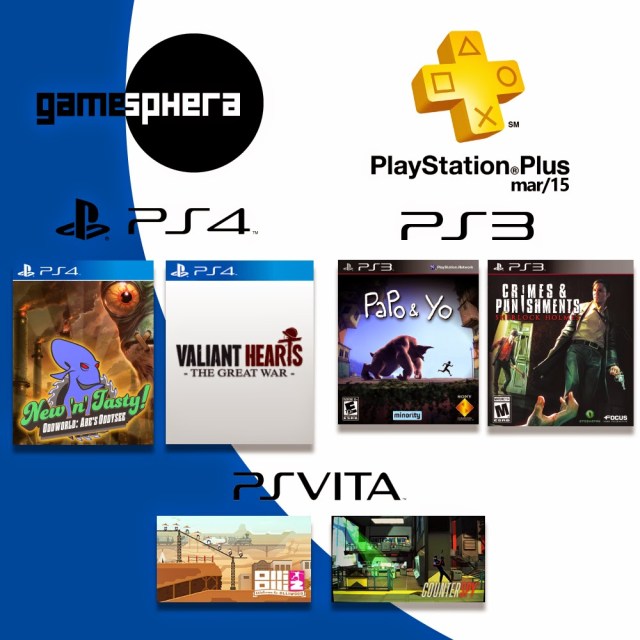 Enfim foram divulgados os jogos que estarão gratuitos para os assinantes da Playstation Plus neste mês de março. Entre eles Oddworld Abe`s Odyssee, remake do primeiro jogo da série e Valiant Hearts, aclamado jogo desenvolvido pela Ubisoft.
