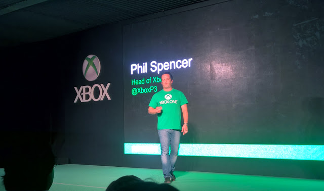 Na sequencia Phil Spencer sobe ao palco, sob muita exaltação do publico, para falar dos exclusivos Xbox. Phil convidou ao palco Emerson Fittipaldi para falar da parceria da Fittipaldi Racing Academy com Forza 6 que darão aos melhores jogadores a oportunidade de se tornarem pilotos de verdade através de um reality show que acontecerá em janeiro de 2016.