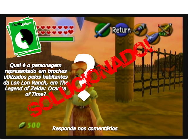 Qual é o personagem representado em broches utilizados pelos habitantes da Lon Lon Ranch, em The Legend of Zelda: Ocarina of Time?