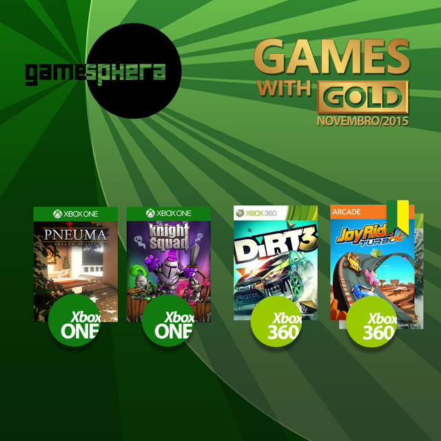 Anunciado os jogos gratuitos do programa Games With Gold de novembro. Destaque para Pneuma no Xbox One e Dungeon Siege III no Xbox 360. Lembrando que todos rodaram no Xbox One, através da retrocompatibilidade, a partir de 12 de novembro. A seguir, trailers e links para os jogos.