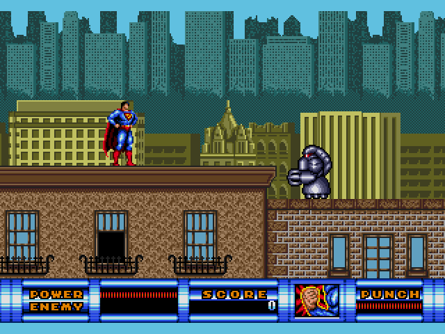 O primeiro destaque merecido do Homem de Aço vai para o jogo lançado para o Mega-Drive. Esta versão foi totalmente inspirada no desenho animado, tendo Braniac como principal vilão. O jogo era um mix de ação e plataformas, permitindo alternar entre os poderes de Super-Homem, como visão laser, super-força, voo, e até fazer buracos no chão. Não era nada de excepcional, mas foi um dos jogos mais convincentes do Super-Homem.
