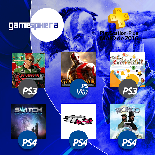 Na lista de jogos da Playstation Plus de maio, temos Tropico 5 para PS4 e God of War: Ghost Of Spartan para o Vita além de outros títulos. Veja lista completa abaixo, com trailers e link para a loja.