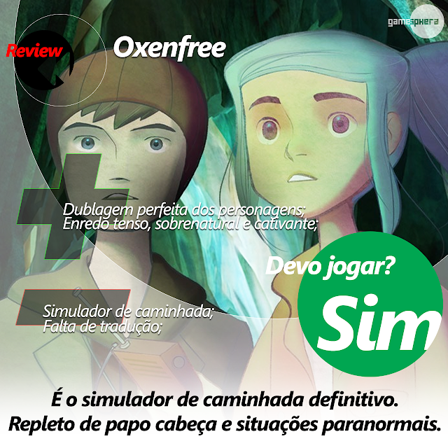 Como já disseram por ai, Oxenfree é um simulador de caminhada. Excelente por assim dizer. Com pitadas de terror psicológico e sobrenatural, não necessitando de nenhum banho de sangue ou sustos sem contexto. Ele soube criar essa atmosfera sinistra, suficientemente fazendo com que não perca a vontade de explorar suas florestas e bases militares em ruínas.