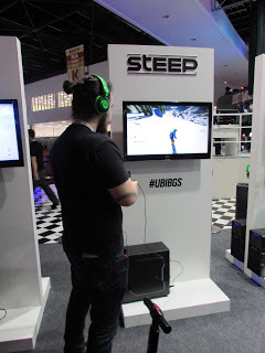 Testamos o curioso Steep que foi apresentado também na E3 e estava jogável, manobras radicais e com detalhes da Neve perfeitas bateu aquela saudade de 1080º de N64.