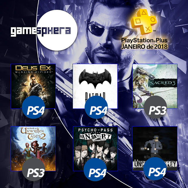 Confira os jogos disponibilizados para os assinantes da Playstation Plus neste mês de Janeiro. Começando bem o ano de 2018 temos dois bons títulos para Playstation 4: Deux Ex: Mankind Divides e o Batman da Telltale. Confira os trailers abaixo.