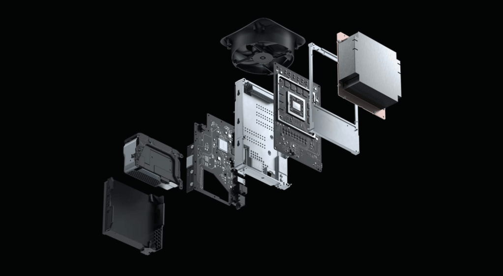 Xbox Serie X conta com os 12 Teraflops, que indicam a capacidade de cálculos por segundo do console (2 a mais que o PS5). O processador é um de arquitetura Zen 2 customizado em parceria com a AMD, e a GPU de 1.8GHz e 16Gb de RAM. Essa configuração permite resoluções 4K a 60fps, podendo chegar a 8K e 120fps.